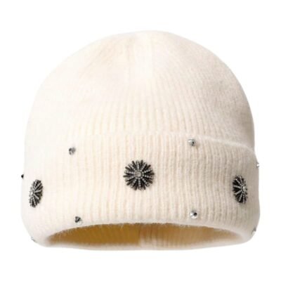 Wholesale Custom Acrylic Beanie with Pearl Chain & Rhinestone – Warm & Stylish