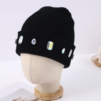 Y2K Rhinestone Knit Beanie – Custom Logo Warm Winter Hat