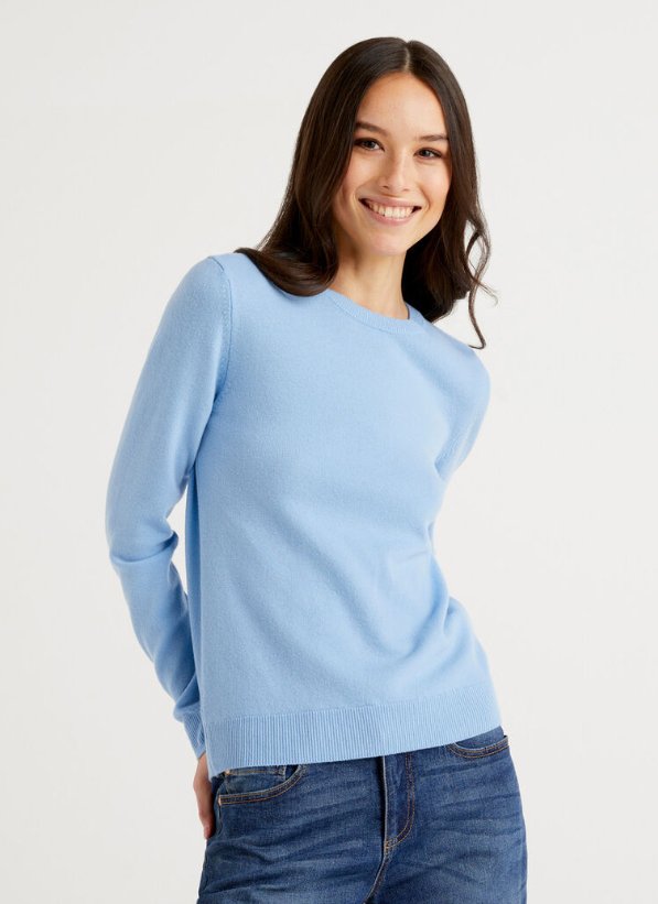 Light blue sweaters are highly adaptable pieces, pairing well with both jeans for casual yet fashionable attire and skirts to express feminine qualities. As far as accessories are concerned, gold or silver jewelry will add some shimmering accents that make the outfit complete.