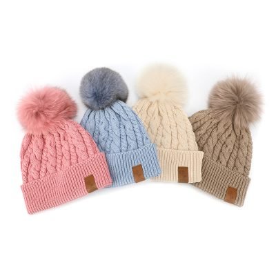 Custom Acrylic and Cotton Two-Tone Plain Pompom Beanie