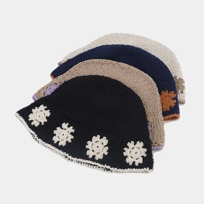 Wool Knitted Commission Patch Colorful Flower Crochet Bucket Hat