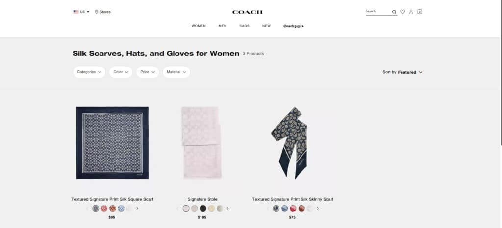 Coach, известный американский бренд шарфов, был основан в Нью-Йорке в 1941 году. В основном компания занимается продажей мужских и женских аксессуаров и подарков, включая кошельки, ювелирные изделия, модные аксессуары, обувь и часы. Сочетание моды и совершенства - главный принцип каждого изделия Coach. Ее аутентичный американский стиль, простой дизайн и долговечность любимы потребителями.